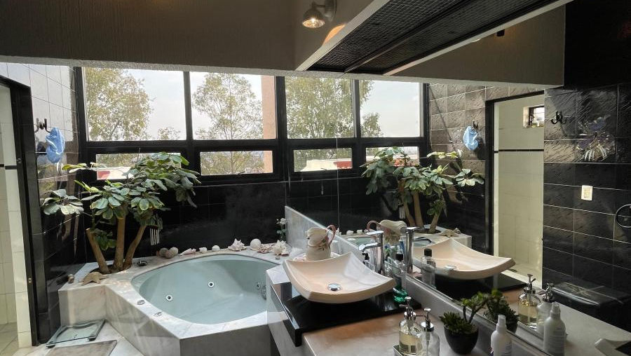 Remodelada, 3 niveles, 4 recámaras con baño y vestidor, la principal con jacuzzi y terraza, family room, biblioteca, sala de tv, estudio, cocina integral moderna, antecomedor, amplio jardín y terrazas, salón de fiestas con baño, cancha de squash, cava, chapoteadero, sauna, garage 6 autos, portón eléctrico, 2 cuartos de servicio con baño completo, 2 medios baños, área de lavado. Excelente ubicación. Excelente estado de conservación.